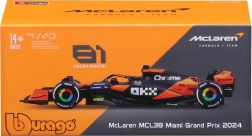 Ce modèle détaillé McLaren MCL38 – Miami Grand Prix 2024 capture l’aérodynamique moderne de la F1 à l’échelle 1:43. La carrosserie métallique brille de façon réaliste, tandis que les marquages des sponsors et les accents colorés des roues complètent l’apparence fidèle du véritable monoplace.