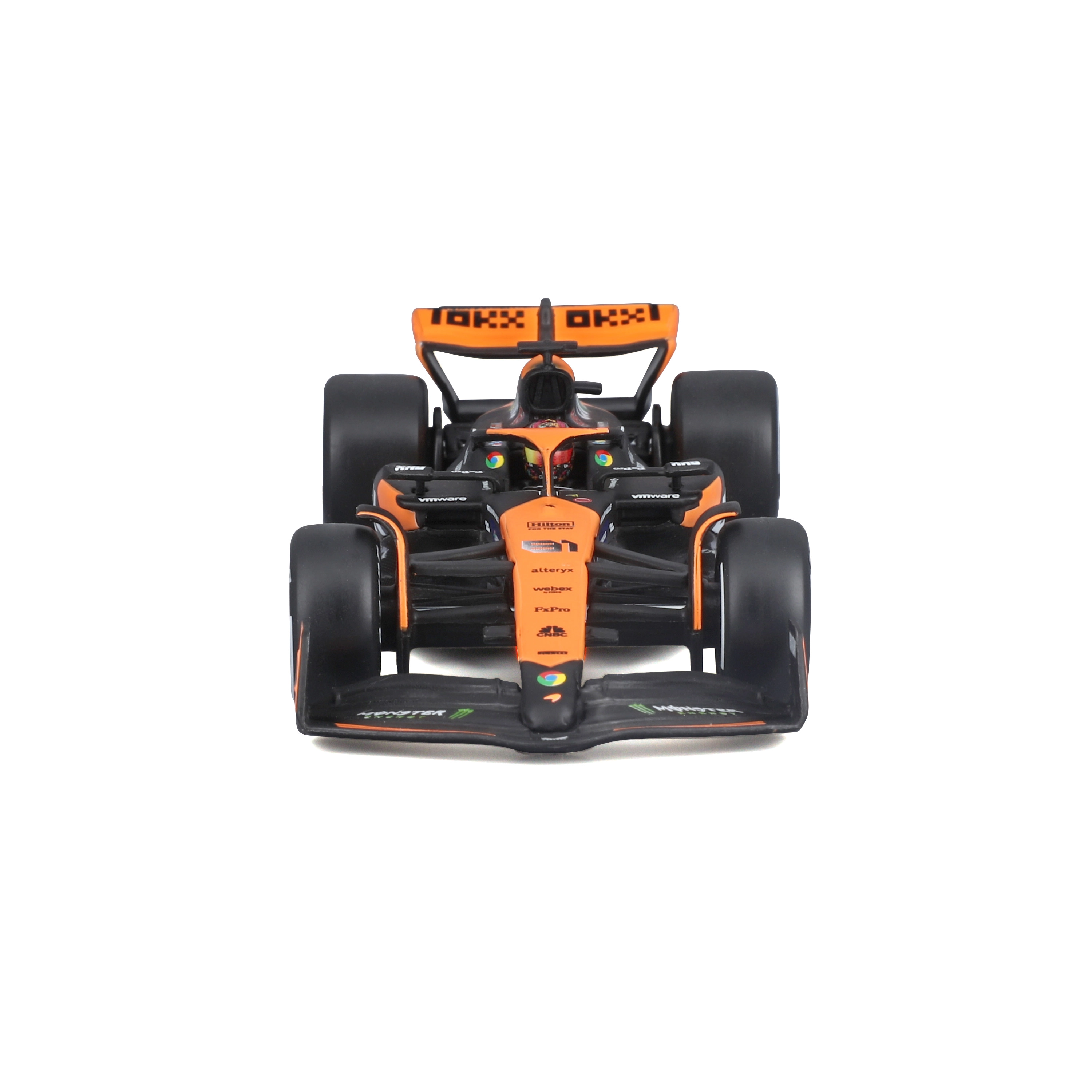 La livrée orange‑noir fidèle, les logos d’équipe précis et les moyeux de roues colorés soulignent le caractère de course de la véritable F1.