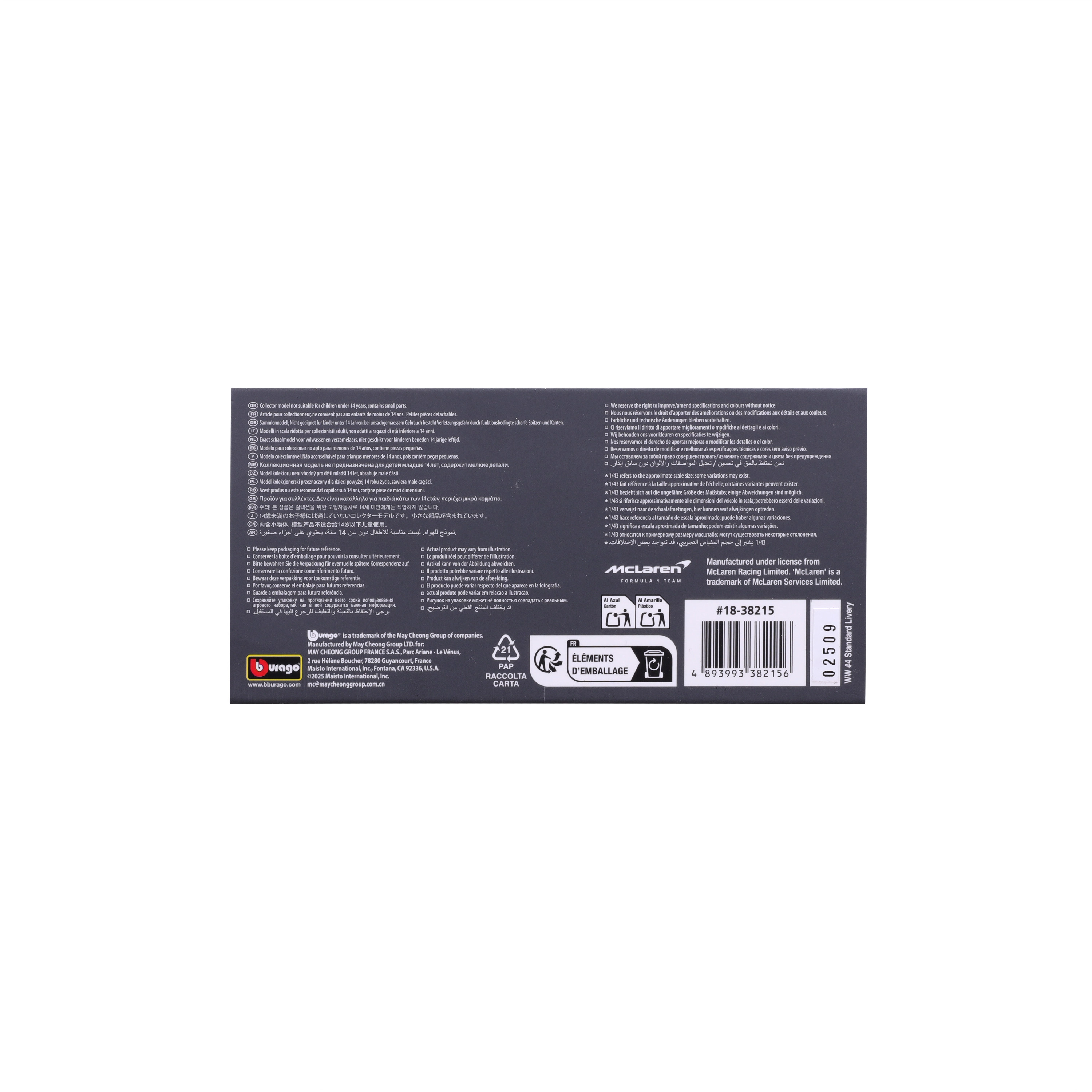 Grâce à la figurine d’Oscar Piastri dans le cockpit, le modèle semble dynamique même en exposition statique. La boîte vitrine transparente sur socle protège de la poussière et permet d’admirer les détails sous tous les angles – idéale pour une étagère, un bureau ou la chambre d’un fan.