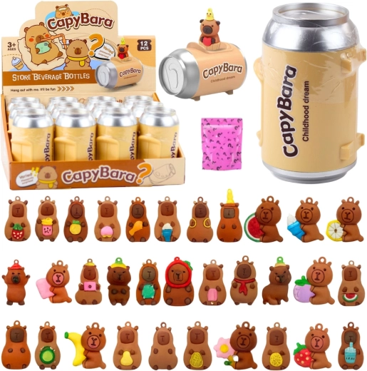 Chaque boîte cache une capybara aléatoire en porte-clés et des cartes. Le déballage est plein de suspense et encourage l’échange et la collection.