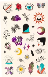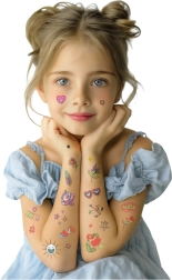 Un joyeux set de tatouages temporaires pour enfants offrant jusqu’à 60 motifs différents – petits cœurs, étoiles, fleurs, croissants de lune et autres motifs féeriques. Les tatouages sont faciles à appliquer, sans danger pour la peau des enfants et durent 3 à 5 jours. Ils se retirent facilement avec du savon et de l’eau tiède, idéaux pour les fêtes, anniversaires ou jeux à thème.