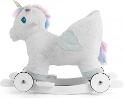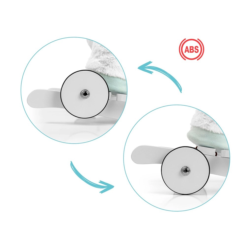 En quelques secondes, passez du mode bascule au mode roulant : les roulettes escamotables transforment la licorne en un adorable petit véhicule pour un usage intérieur. Les oreilles interactives diffusent, lorsqu’on appuie dessus, des bruits de galop et des hennissements joyeux, stimulant ainsi les sens. Jouer avec la licorne à bascule aide à développer la coordination motrice, l’imagination et le sens de l’équilibre.