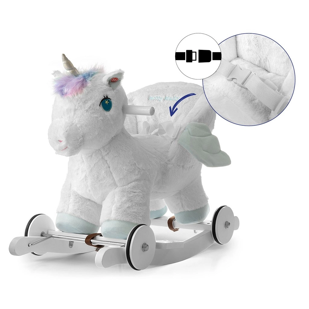 Les roulettes escamotables transforment en un instant la licorne de jouet à bascule en petit véhicule roulant. Parfait pour un jeu polyvalent en intérieur.