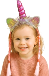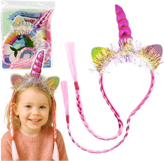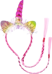 Serre-tête rose licorne avec corne, oreilles et tresses
