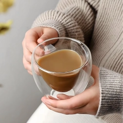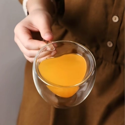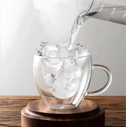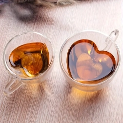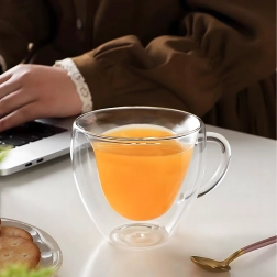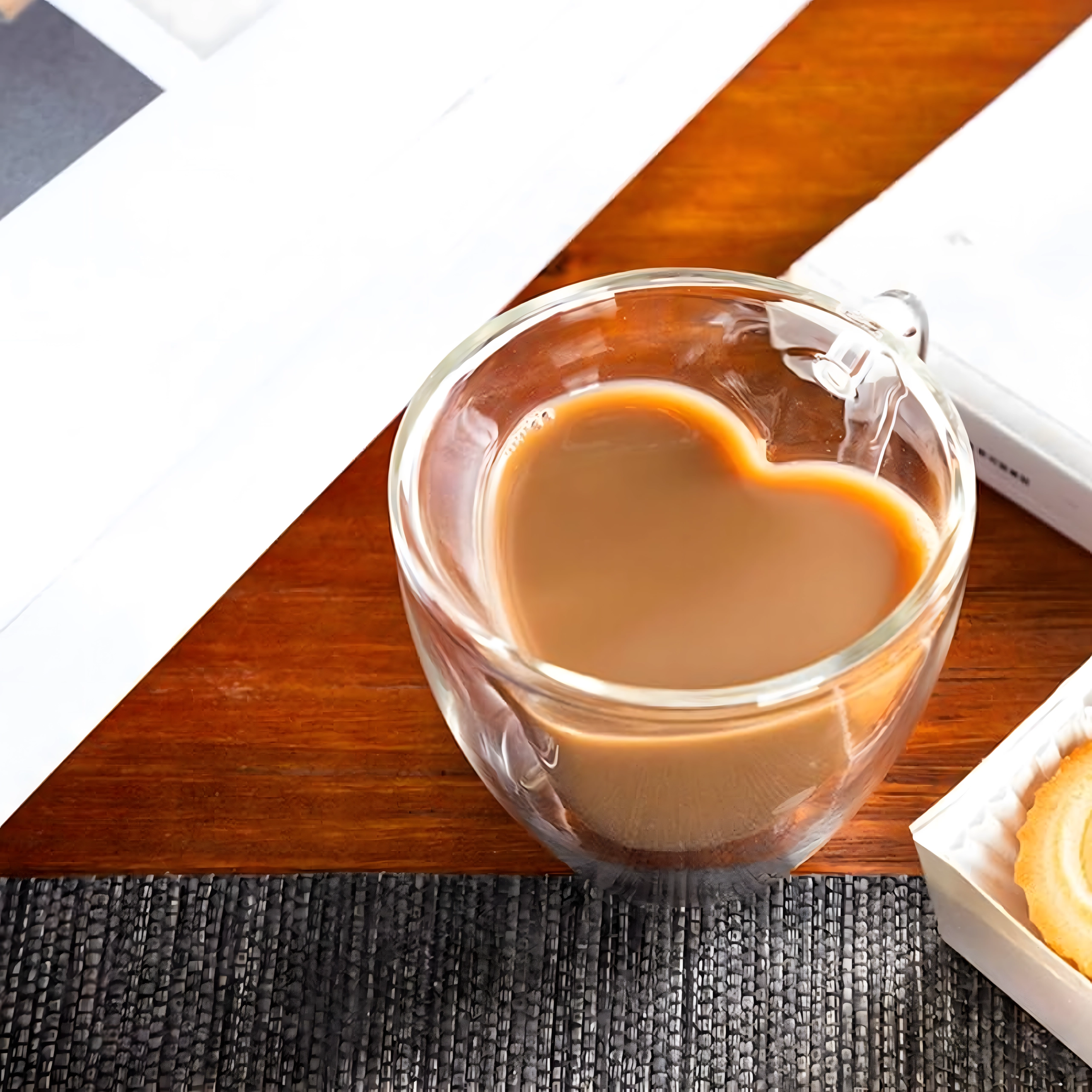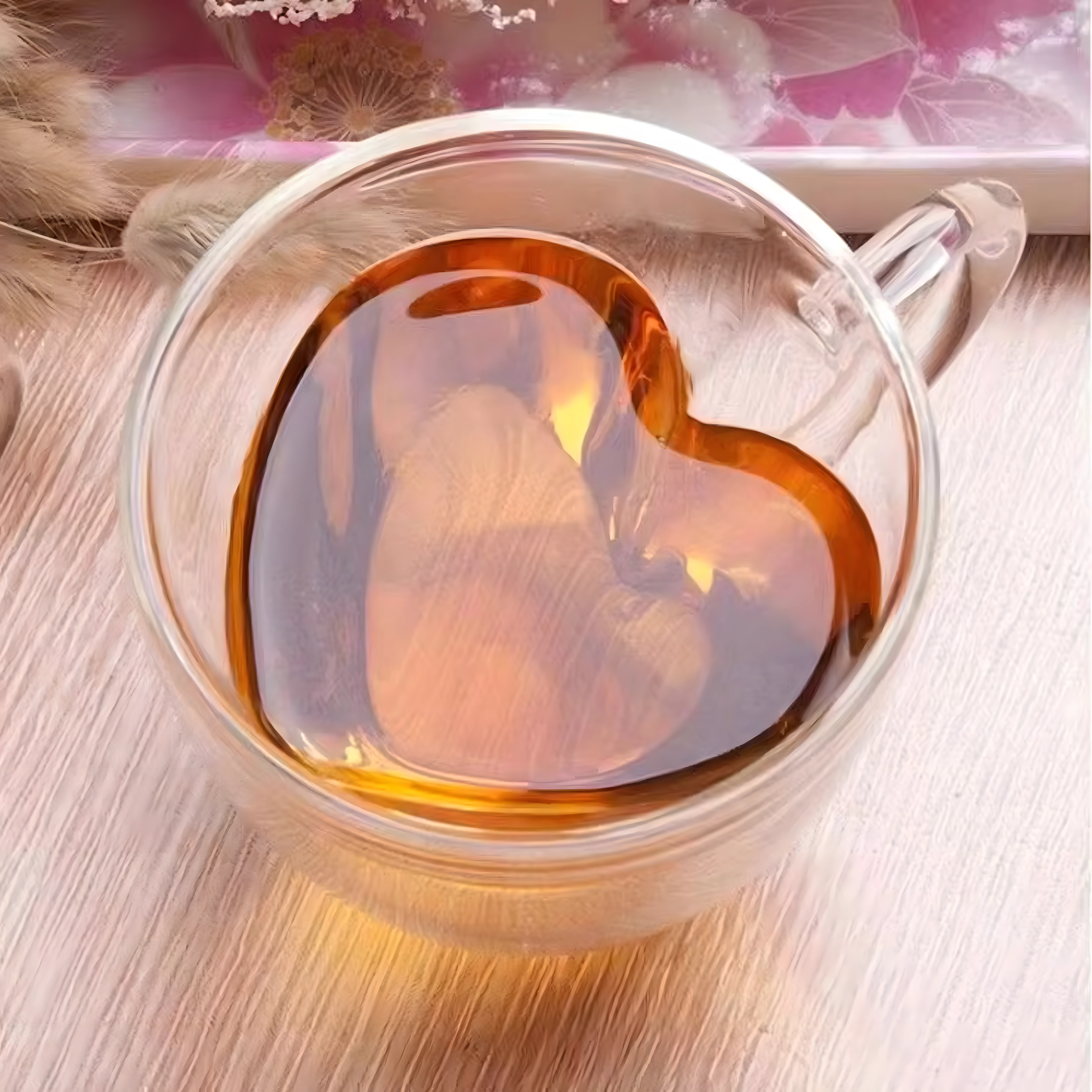 Élégante tasse en verre en forme de cœur d’une capacité de 250 ml, en verre borosilicaté résistant avec double paroi pour une meilleure isolation thermique. Idéale pour le café chaud, le thé aromatique ainsi que les boissons froides et les desserts. Grâce à sa construction isolante, la boisson conserve sa température plus longtemps, tandis que la paroi extérieure reste agréablement fraîche pour une prise en main sûre.