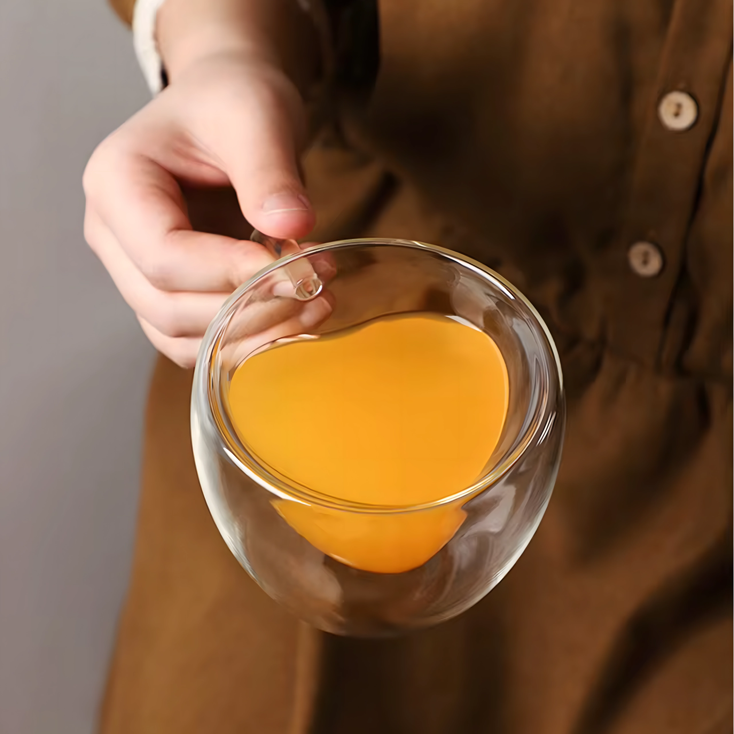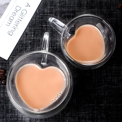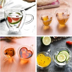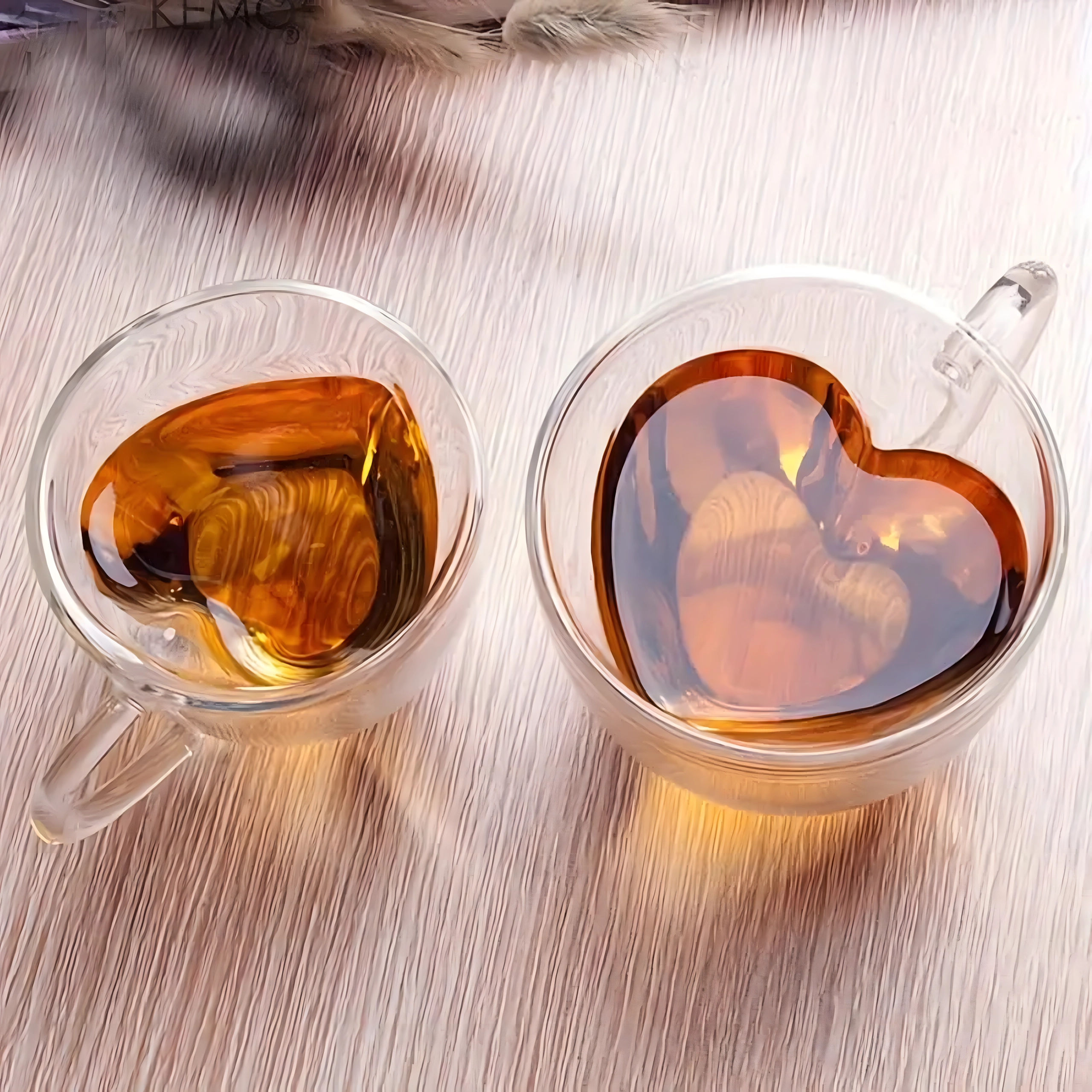 Apportez une touche de romantisme à vos moments du quotidien. La tasse transparente avec chambre intérieure en forme de cœur met en valeur la couleur de la boisson et offre un service élégant. La double paroi limite la condensation pour les boissons froides et protège les mains de la chaleur pour le café et le thé.