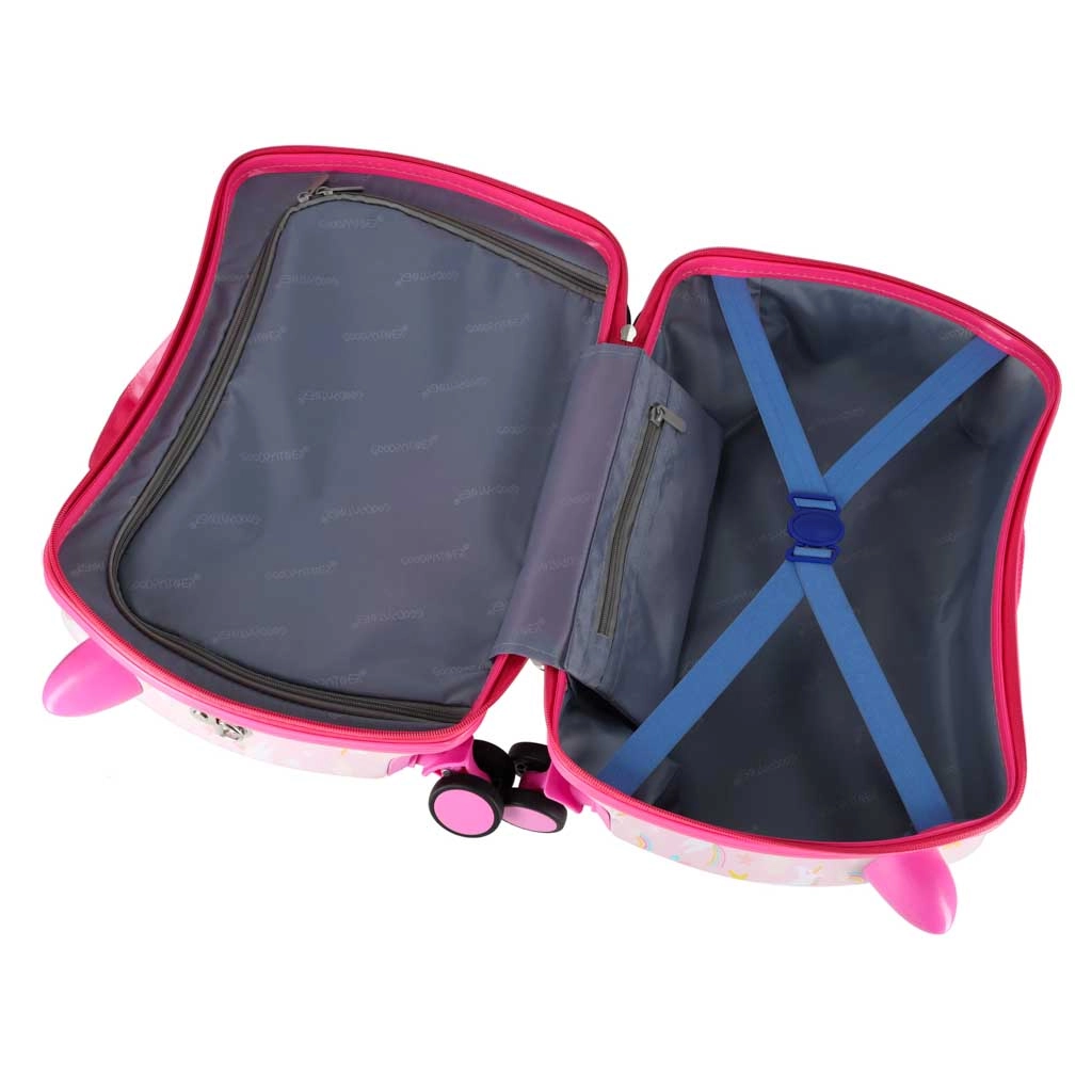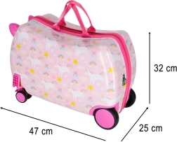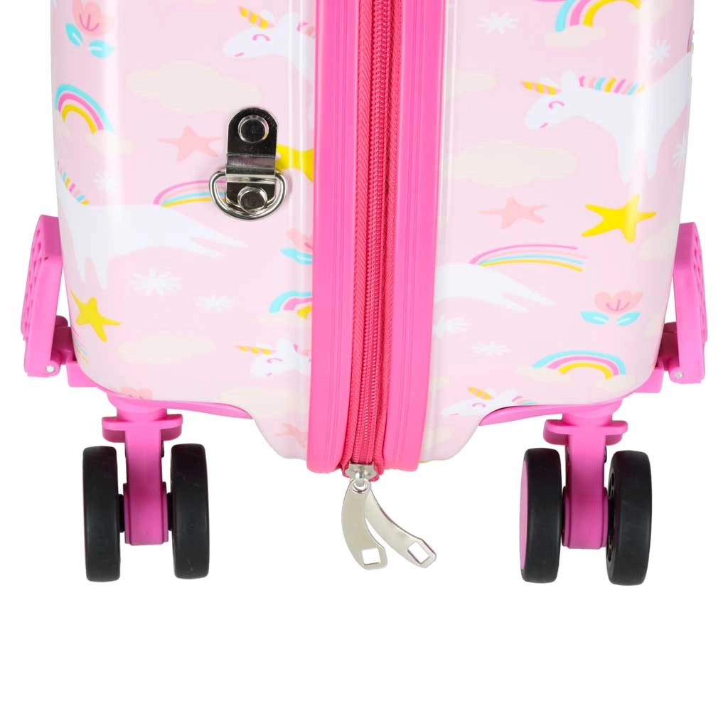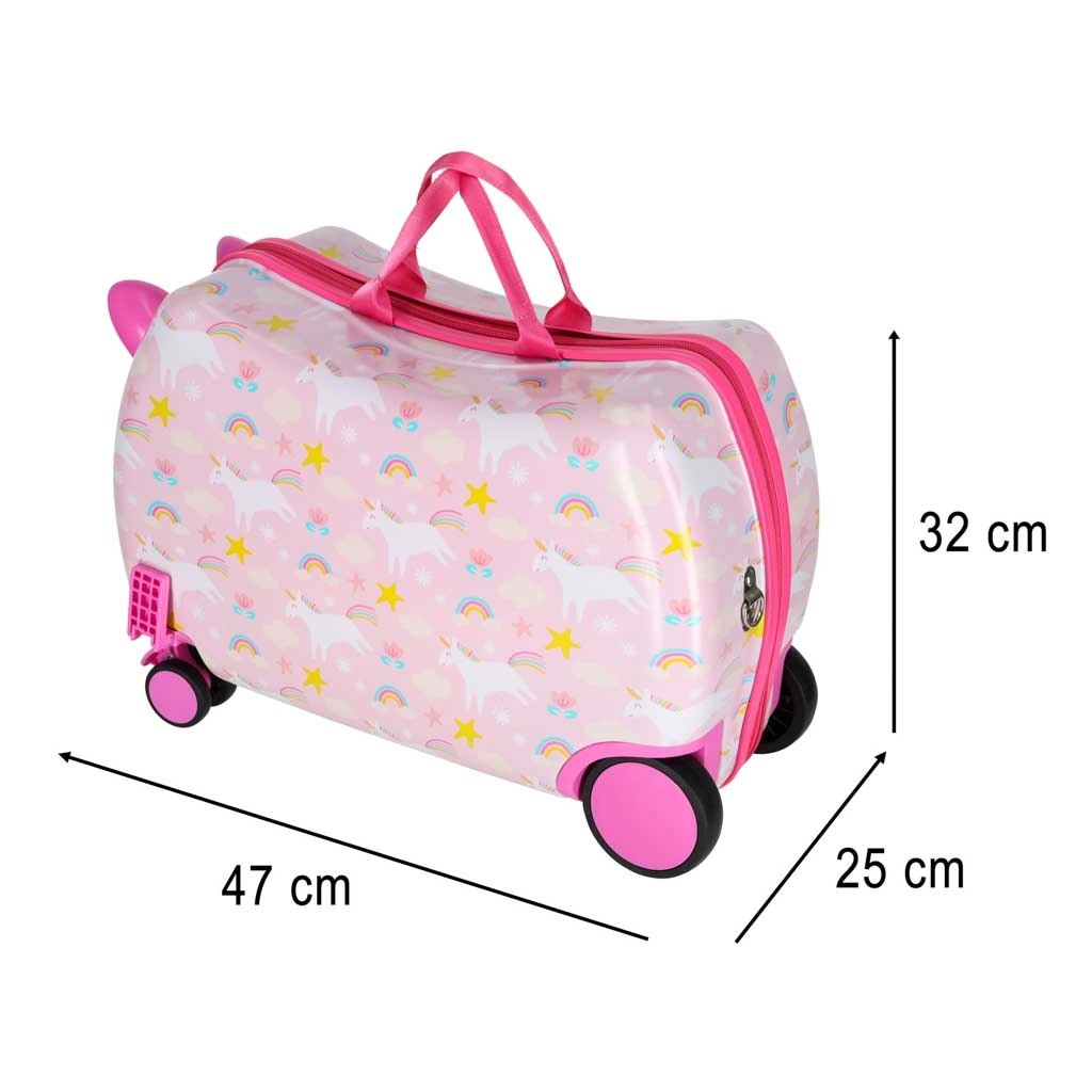 Une valise pour enfant mignonne et pratique avec une licorne pour les petits voyageurs. Elle est légère, résistante et dispose d’une fonction trotteur, permettant à l’enfant de s’asseoir pendant le trajet. Format cabine, roulettes silencieuses à 360° et aménagement intérieur astucieux facilitent chaque voyage en voiture, en train ou en avion.