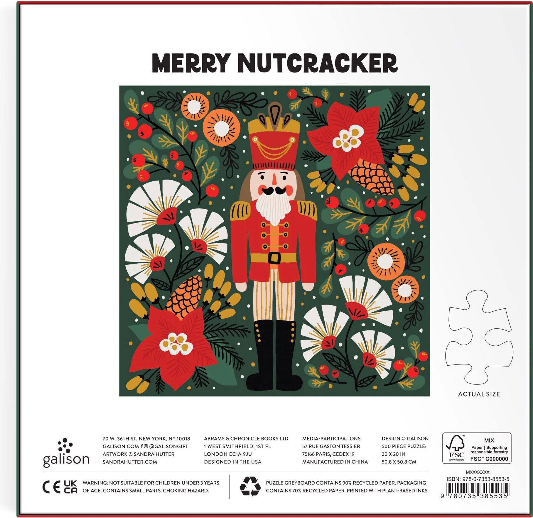 Découvrez la magie de la saison festive avec le design Casse-noisette joyeux. Ces puzzles carrés métallisés offrent un défi agréable et un éclat attrayant qui met magnifiquement en valeur le motif. Grâce au format 50,8 × 50,8 cm et à ses 500 pièces, ils sont parfaits pour se détendre lors des soirées d’hiver ou pour un moment convivial en famille.