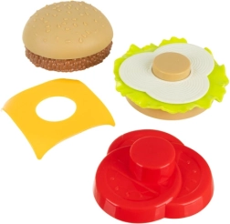 Les éléments du burger et du hot-dog se superposent et se modifient selon l’imagination – les enfants exercent leur motricité fine et leur créativité en construisant le « menu parfait ».