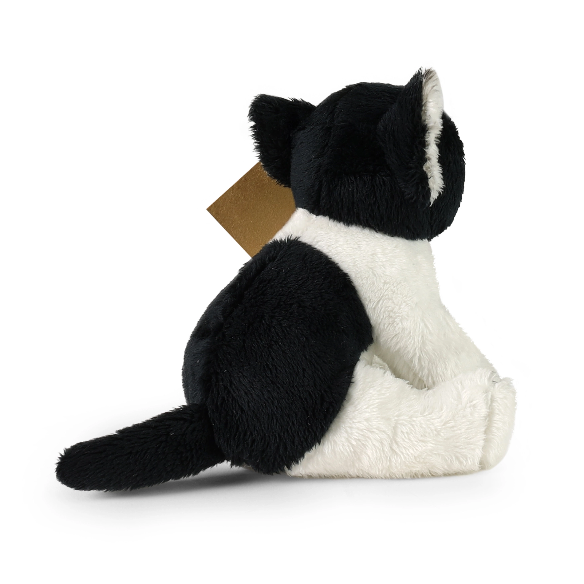 Chat en peluche noir‑blanc assis 14 cm écoresponsable