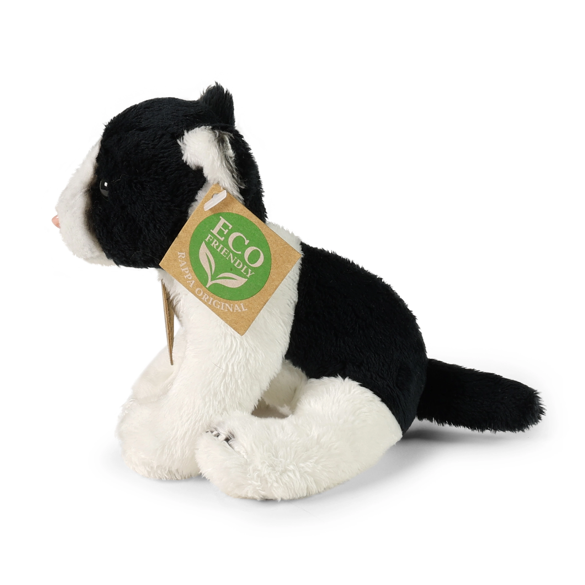 Adorable chat en peluche noir‑blanc de 14 cm qui ravira enfants et adultes. Grâce au travail artisanal, il paraît vivant et est fabriqué en peluche toute douce avec un rembourrage recyclé et sécurisé. Il fait partie de la collection exclusive de la marque Rappa et est adapté dès la naissance.