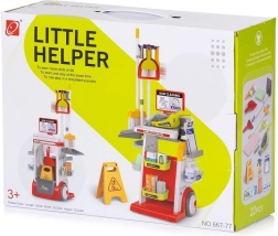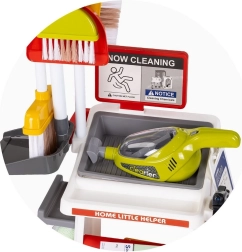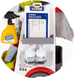 Le chariot pratique avec crochets et étagères accueille le mop, le balai, la balayette, la pelle et le spray. Les enfants apprennent facilement à organiser et à tout ranger après le jeu.