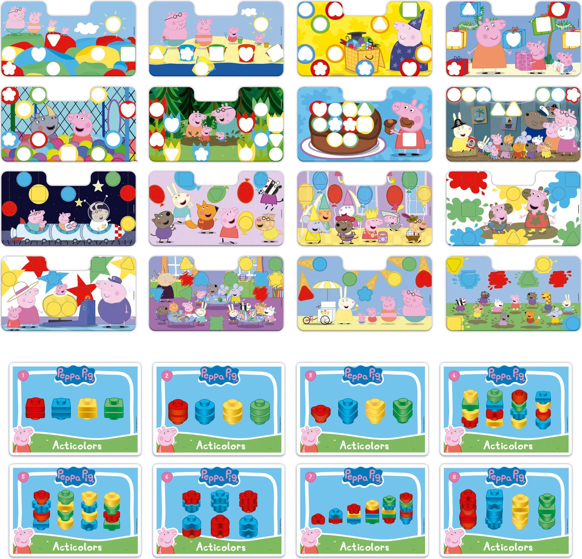 - Platine en plastique avec poignée, 8 fiches recto-verso, 44 pièces de différentes formes et couleurs