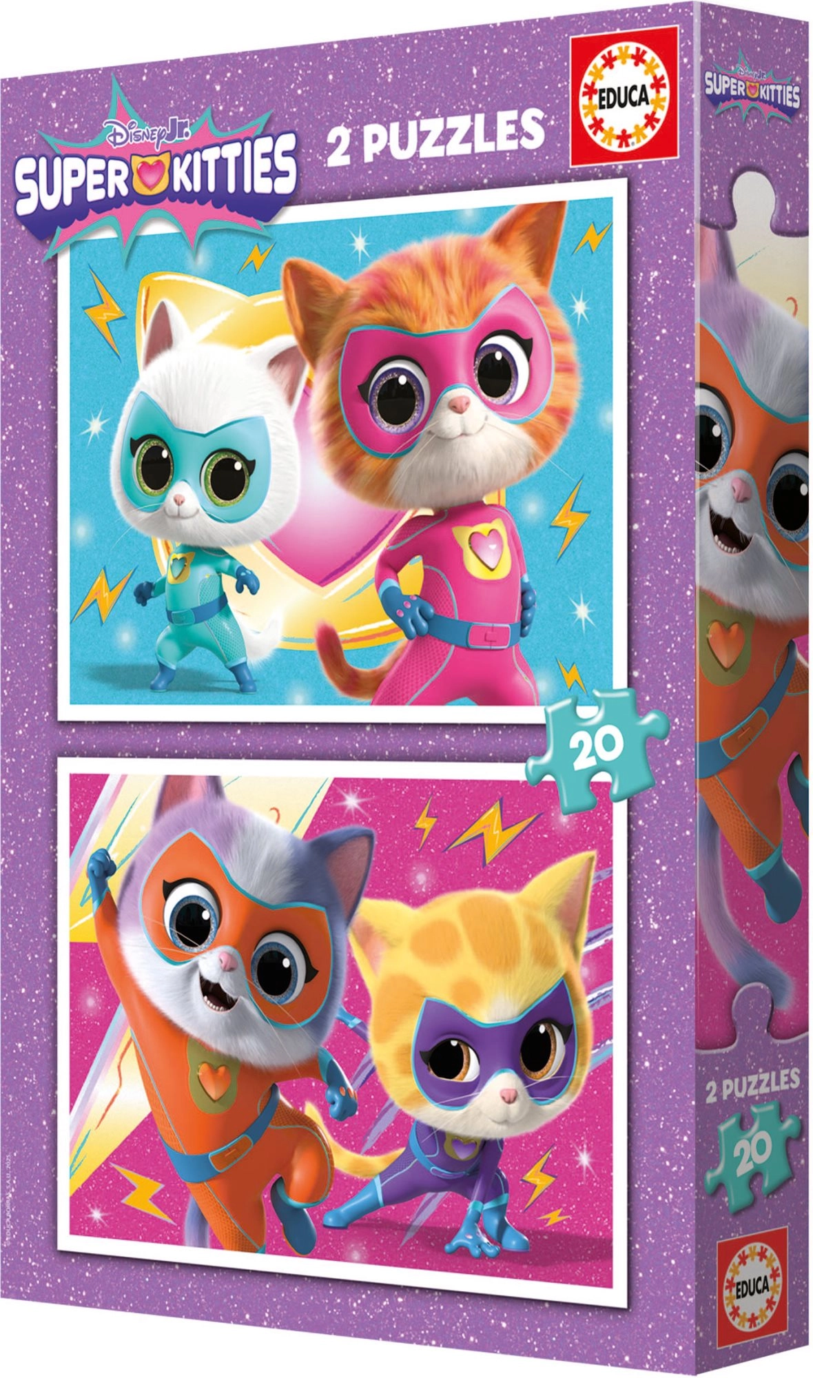 Découvrez la magie des puzzles avec les héros de la série Super Kitties. L’emballage contient deux puzzles séparés avec le même nombre de pièces et le même format final. Grâce aux 20 pièces par puzzle, ils sont idéaux pour les enfants qui souhaitent améliorer leur concentration et leur motricité fine.