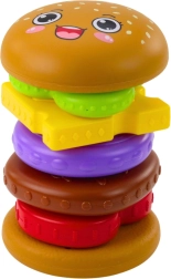 Chaque pièce représente un ingrédient du hamburger. Les enfants apprennent l’ordre, les couleurs et les formes tout en exerçant leur motricité fine et leur concentration.