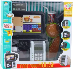 Caisse libre-service pour enfants avec terminal et scanner – set FAST FOOD avec lumières et sons
