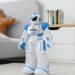 Le robot interactif SMART BOT a été conçu pour les enfants qui aiment les jouets intelligents. Son design futuriste, ses éléments rétroéclairés et ses mouvements fluides garantissent un divertissement attrayant et durable. Le robot peut se déplacer dans toutes les directions, pivoter à 360°, bouger les bras, parler, jouer des mélodies et danser – le tout contrôlé facilement grâce à la télécommande incluse.