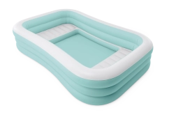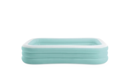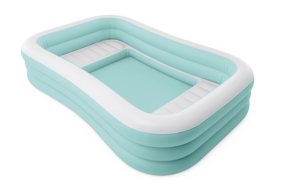 La piscine gonflable Swim Center Family Lounge est idéale pour le repos en famille dans le jardin ou sur la terrasse. Sa forme rectangulaire aux coins légèrement arrondis et la combinaison de bleu clair et de blanc apportent une touche fraîche et élégante. Trois chambres gonflables indépendantes garantissent une solidité, une stabilité et une hauteur de parois confortables, pour que les enfants dès 6 ans comme les adultes profitent pleinement de la baignade.