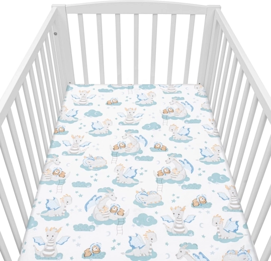 Drap-housse en coton doux et agréable avec motif de petit dragon pour lit bébé. Grâce à la toile de coton lisse, il est délicat pour la peau, et l’élastique cousu sur tout le pourtour assure une tension parfaite et une bonne tenue sur un matelas de 120 × 60 cm. La certification OEKO-TEX STANDARD 100 garantit la sécurité pour les enfants.