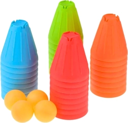 33 gobelets colorés, 6 balles légères