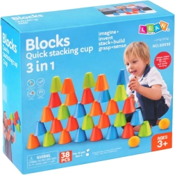 Jeu d’adresse et éducatif 3-en-1 gobelets rapides avec balles, 38 pièces