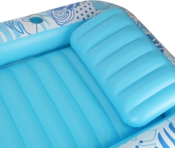 Créez votre zone de détente privée à la surface de l’eau. Ce matelas gonflable avec oreiller amovible au design bleu et blanc allie confort, stabilité et style. Il se gonfle rapidement à l’aide d’un compresseur ou d’une pompe électrique, et grâce à ses chambres à air multiples, il conserve sa forme même lors d’une utilisation prolongée.