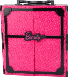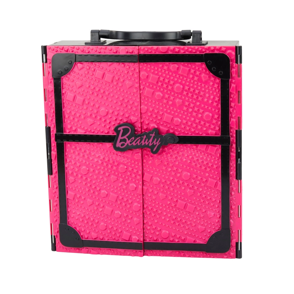 Cette garde-robe rose pliable combine maison de poupée et dressing portable. Une fois ouverte, elle offre un espace clair avec étagères, tiroirs et cintres, inspirant la création de tenues et le maintien de l’ordre. Inclut une grande poupée (env. 30 cm) et un ensemble de robes élégantes, chaussures, sacs à main et bijoux.