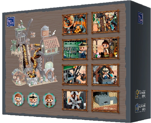 Le jeu de construction Pantasy Western Mine vous transporte à l’époque de la ruée vers l’or. Structures en bois, machines, rampes et tunnel d’entrée composent une diorama spectaculaire mesurant environ 40 × 32 × 46 cm une fois assemblée. Grâce au système mécanique GBC (Great Ball Contraption), les billes « dorées » circulent en continu sur le parcours et reviennent au départ, offrant un spectacle captivant.