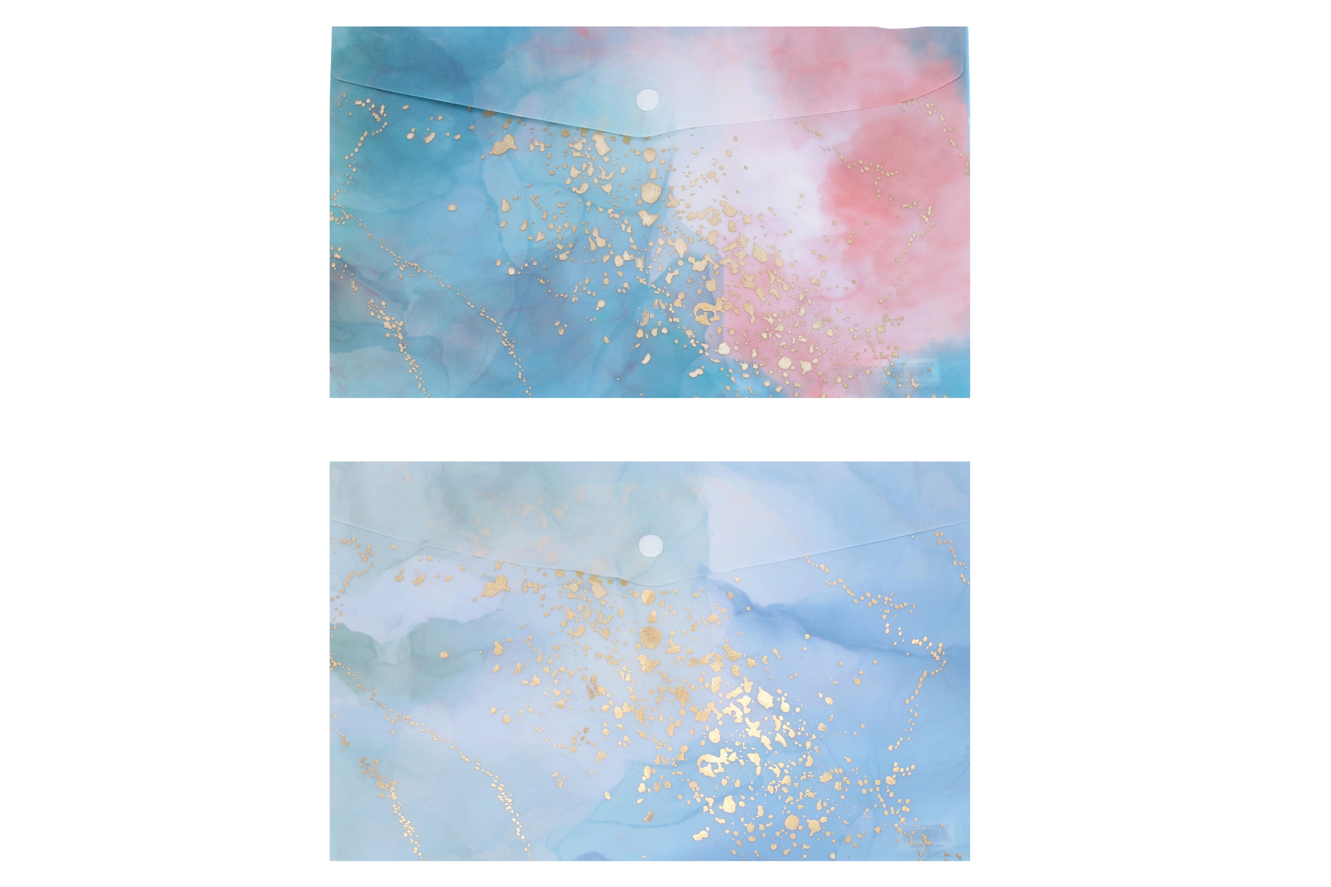 Chemise plastique à bouton-pression A4, design marbre, colorée