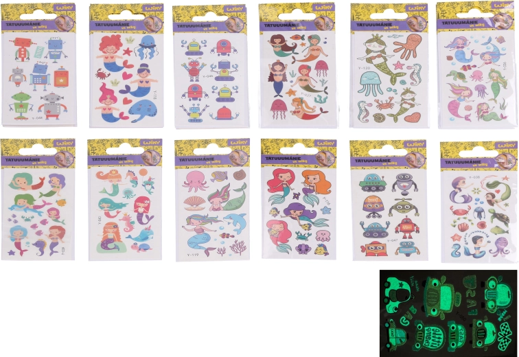 Autocollants tatouage phosphorescents – assortiment 10,5 × 6 cm