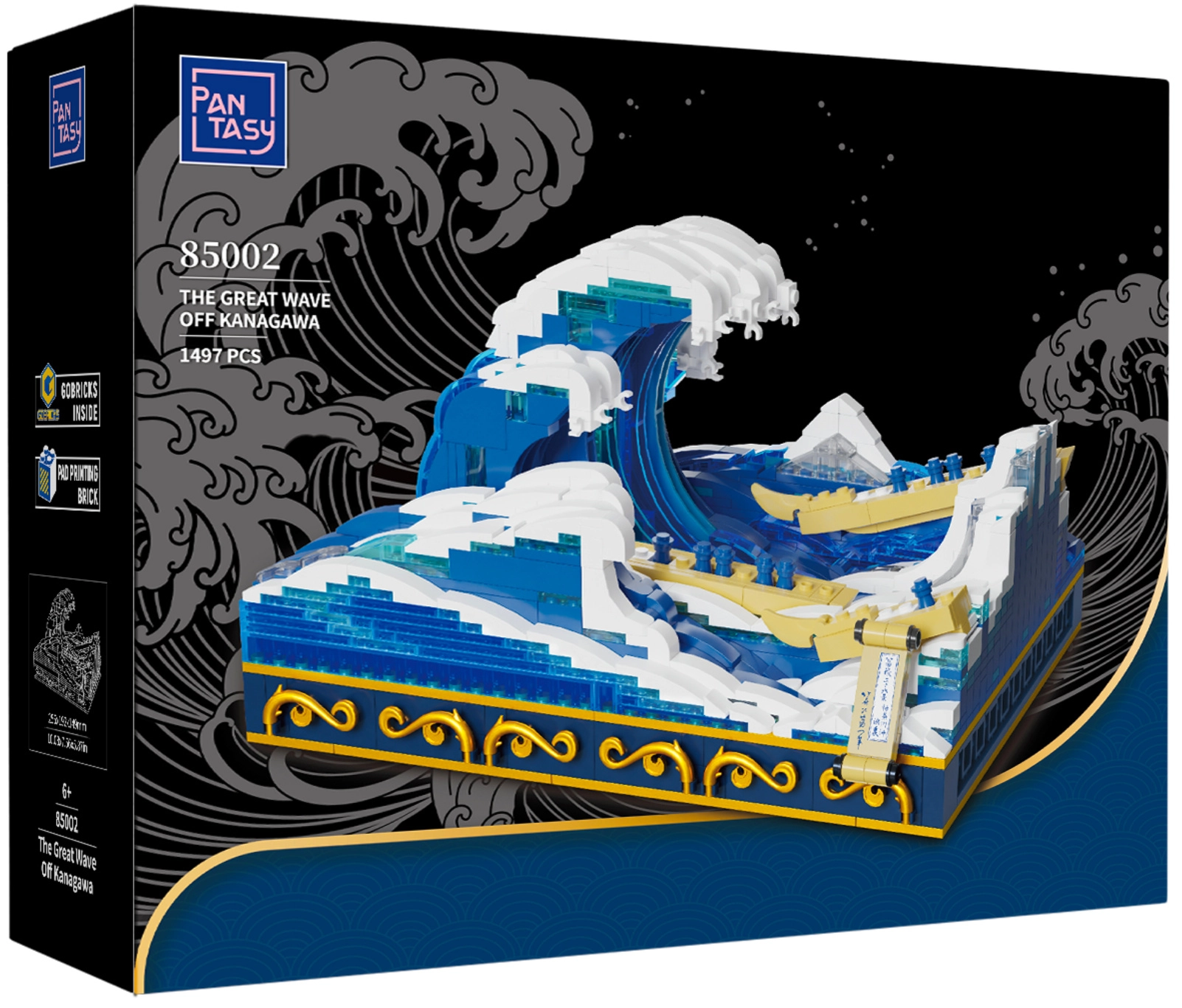 Découvrez le set de construction artistique Pantasy inspiré de l'œuvre japonaise iconique La Grande Vague au large de Kanagawa de HOKUSAI. À partir de 1 497 pièces ABS de haute qualité, assemblez un diorama 3D détaillé sur un élégant socle – une décoration d'intérieur idéale et un modèle de collection. La boîte offre une expérience de construction captivante de 5 à 6 heures, développant la créativité, la patience et la motricité fine.