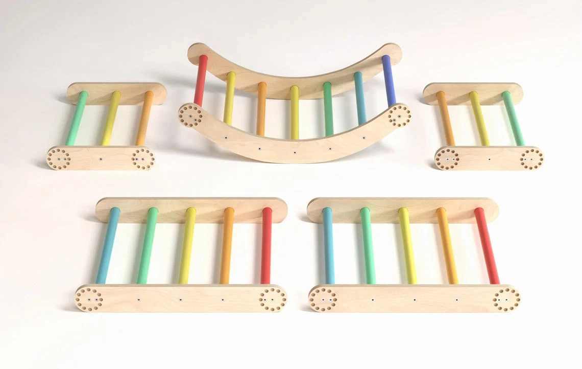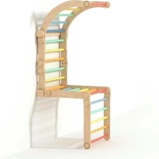 Busykids espaliers d’intérieur en bois avec barre arc-en-ciel