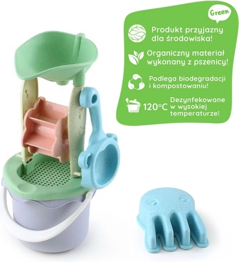 Découvrez un plaisir écologique avec le set pour enfants Woopie Green. Le cœur du set est un moulin à sable et à eau qui se met à tourner à chaque versement et transforme le jeu en activité captivante. Sa construction légère et résistante et ses formes arrondies garantissent une utilisation sûre et confortable même pour les plus petites mains.
