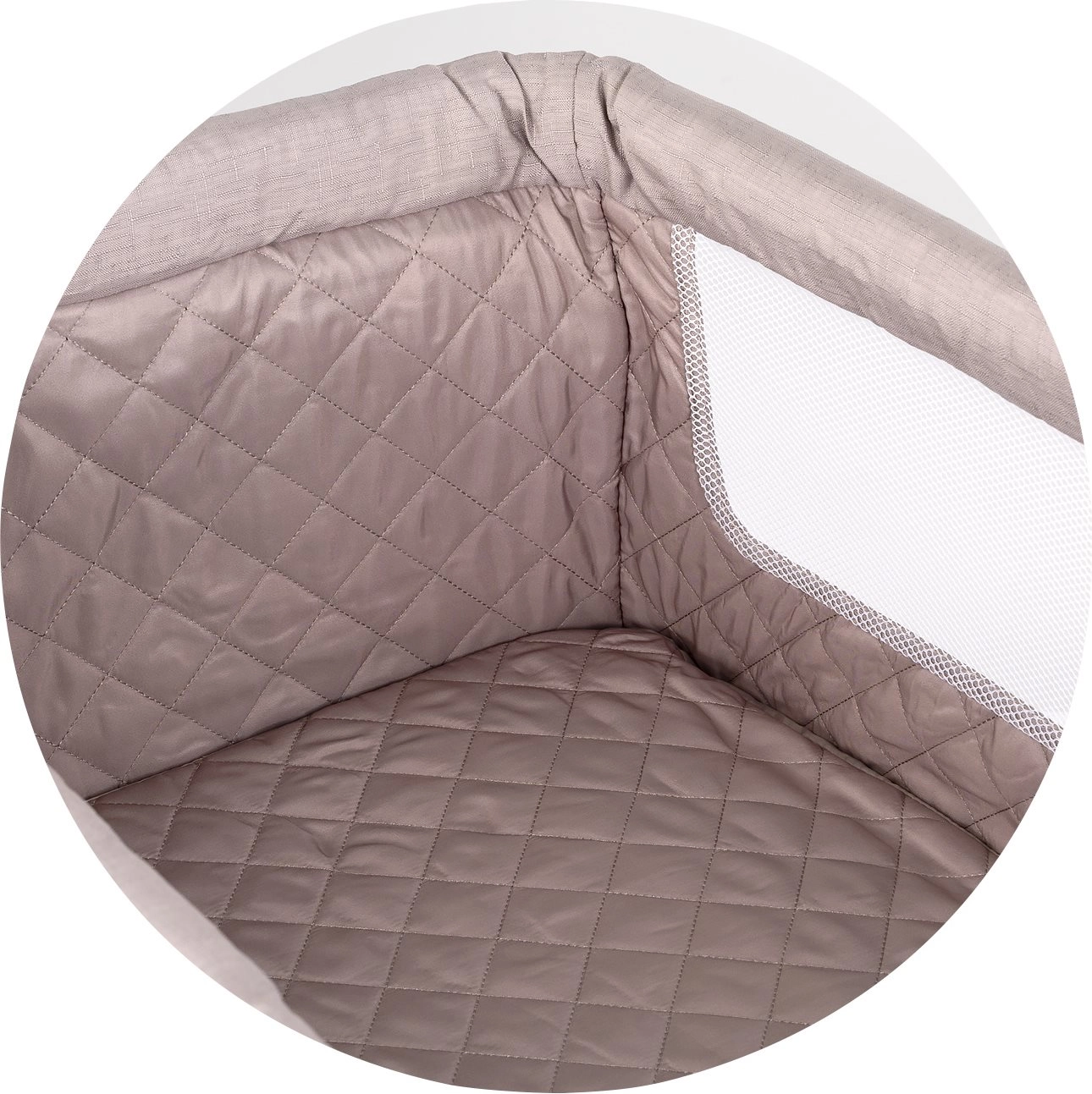 Les côtés en maille assurent une excellente circulation de l’air et une surveillance continue du bébé. L’intérieur doux et rembourré avec matelas confortable favorise un sommeil paisible.