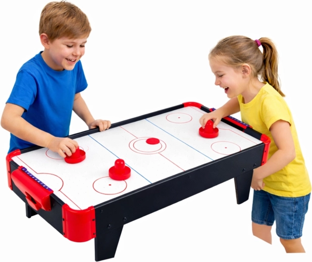 Le mini air hockey de table compact apporte un divertissement dynamique dans chaque chambre d’enfant. Grâce au système air flow, le palet glisse en douceur et rapidement sur la surface, l’alimentation par piles (3× AA) permet de jouer sans câbles et le compteur analogique garde une trace du score. Structure légère et stable, montage facile et dimensions idéales pour une table en font un excellent choix pour des duels en famille ou des moments entre amis.