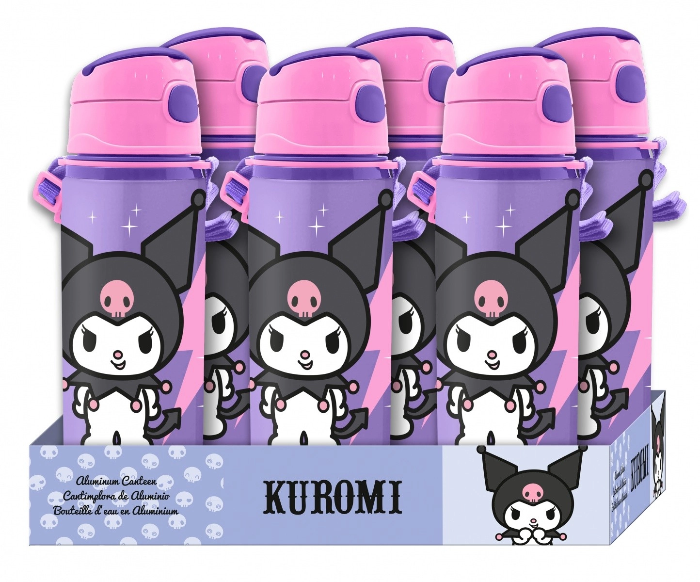 Gourde légère et résistante en aluminium d’une capacité de 600 ml avec motif KUROMI, idéale pour les enfants lors des excursions, à la maternelle et pour une utilisation quotidienne. Elle offre une faible masse, une utilisation pratique et un volume suffisant pour toute la journée.