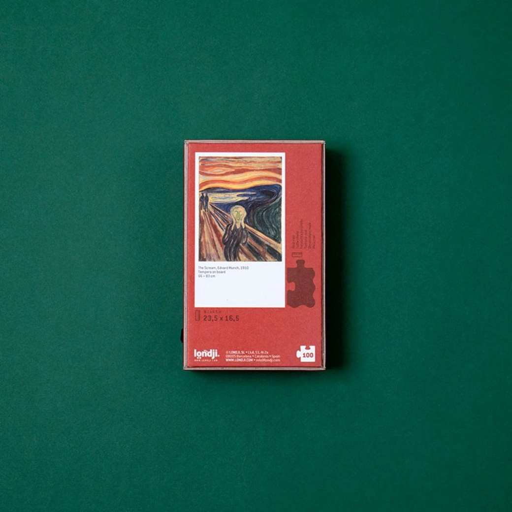 Un puzzle de poche avec le motif iconique du Cri proposant 100 pièces robustes dans un format compact, idéal pour les voyages comme pour des moments calmes de concentration. Parfait comme petit cadeau, il entraîne la patience et la perception visuelle.