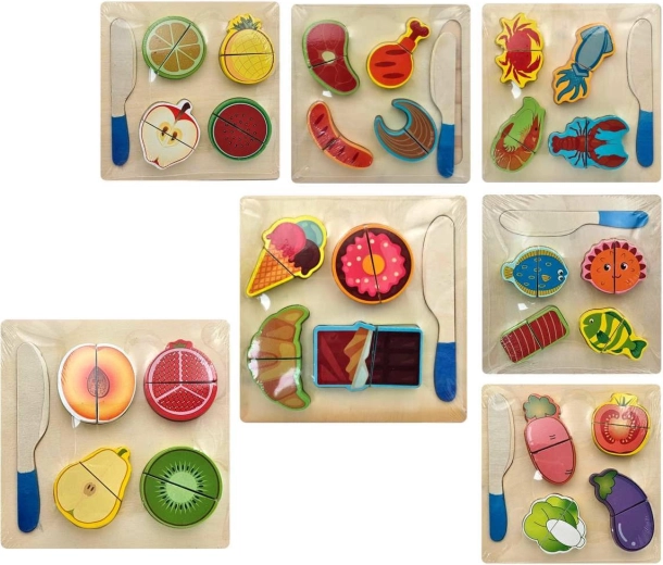 Le set est disponible en plusieurs thèmes, par exemple fruits, légumes ou viennoiseries. Chaque pièce est fabriquée en bois résistant avec des bords lisses pour un jeu en toute sécurité. Le prix s’applique à une pièce/variante – idéal pour enrichir progressivement la collection d’aliments de l’enfant.