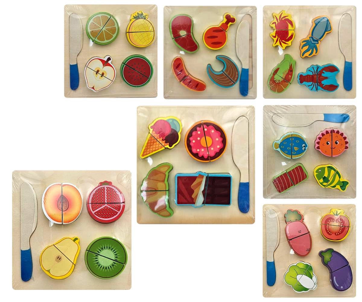 Découvrez un jeu créatif avec des aliments en bois à scratch, qui peuvent être séparés et réassemblés à volonté. En « découpant » de manière sécurisée, les enfants entraînent leur motricité fine, la coordination œil-main ainsi que le jeu de rôle en cuisinant dans leur petite cuisine.