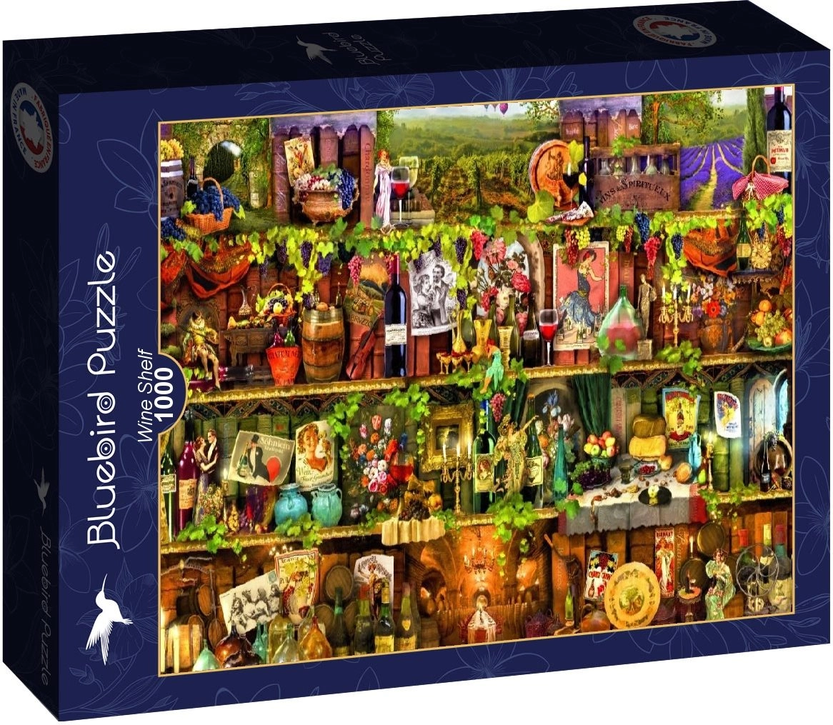 Profitez d’un moment de détente en assemblant une image élégante au motif d’étagère à vin. Ce puzzle de qualité de 1000 pièces de la marque BLUEBIRD offre des découpes précises, une finition de surface soignée et un format final d’environ 69 × 47,8 cm – idéal pour l’encadrement et l’exposition.