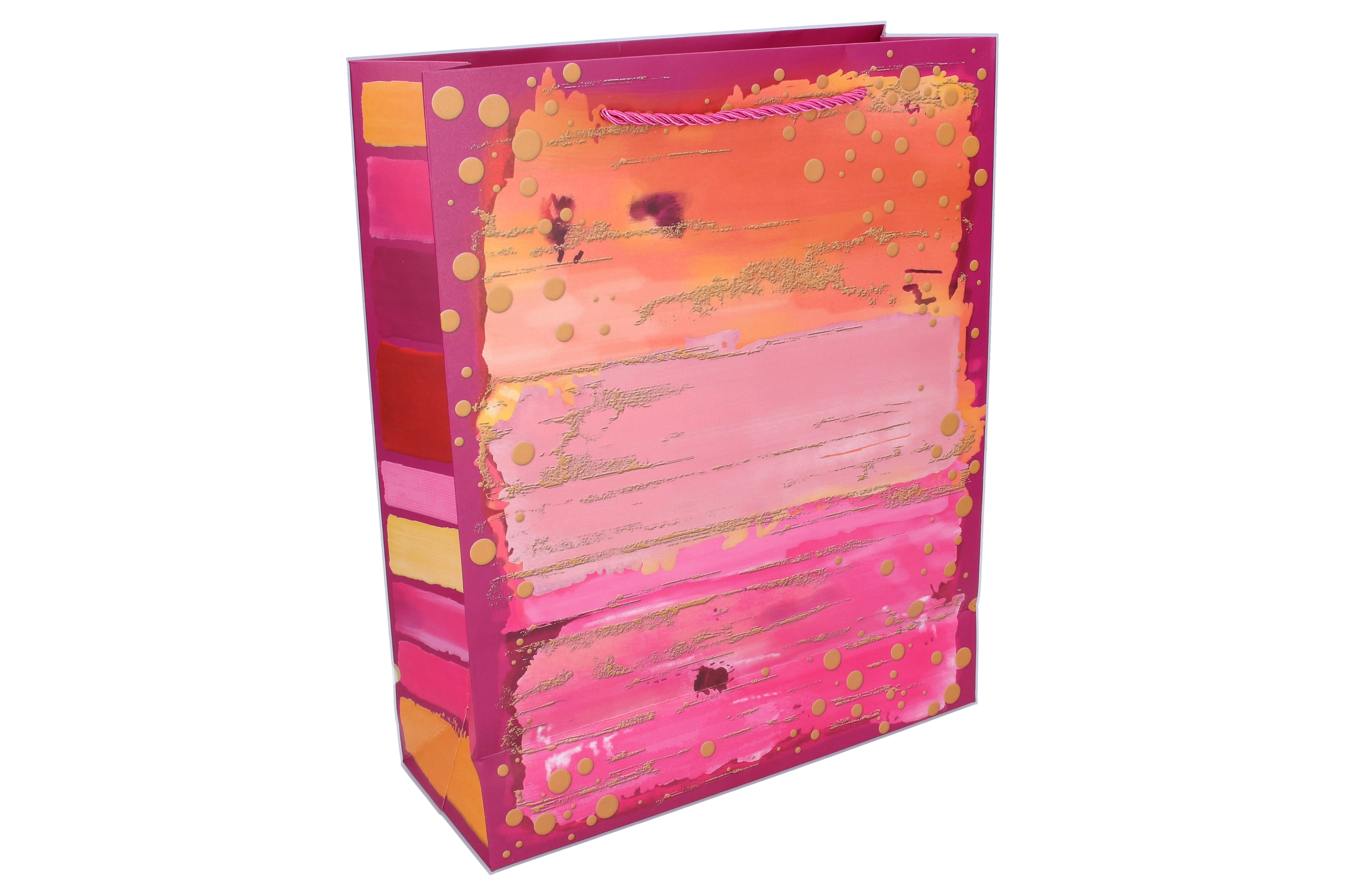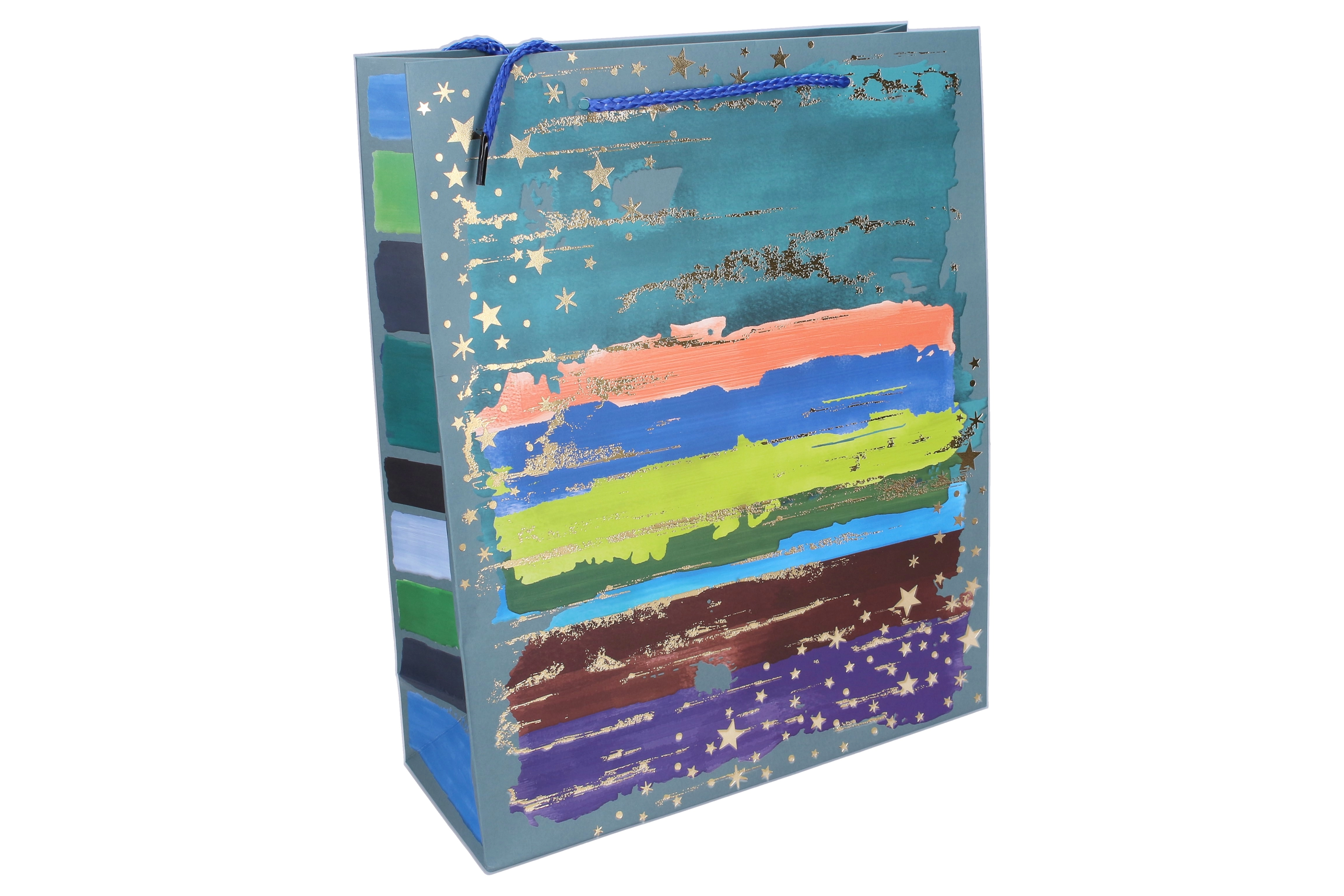Ce sac cadeau polyvalent est idéal pour les anniversaires, les fêtes et les cadeaux d’entreprise. Grâce à son papier épais, ses anses de qualité et ses renforts, il supporte le contenu en toute sécurité tout en ayant une allure représentative. Le design moderne avec des coups de pinceau colorés et des éléments dorés métallisés confère un aspect premium à chaque présent.