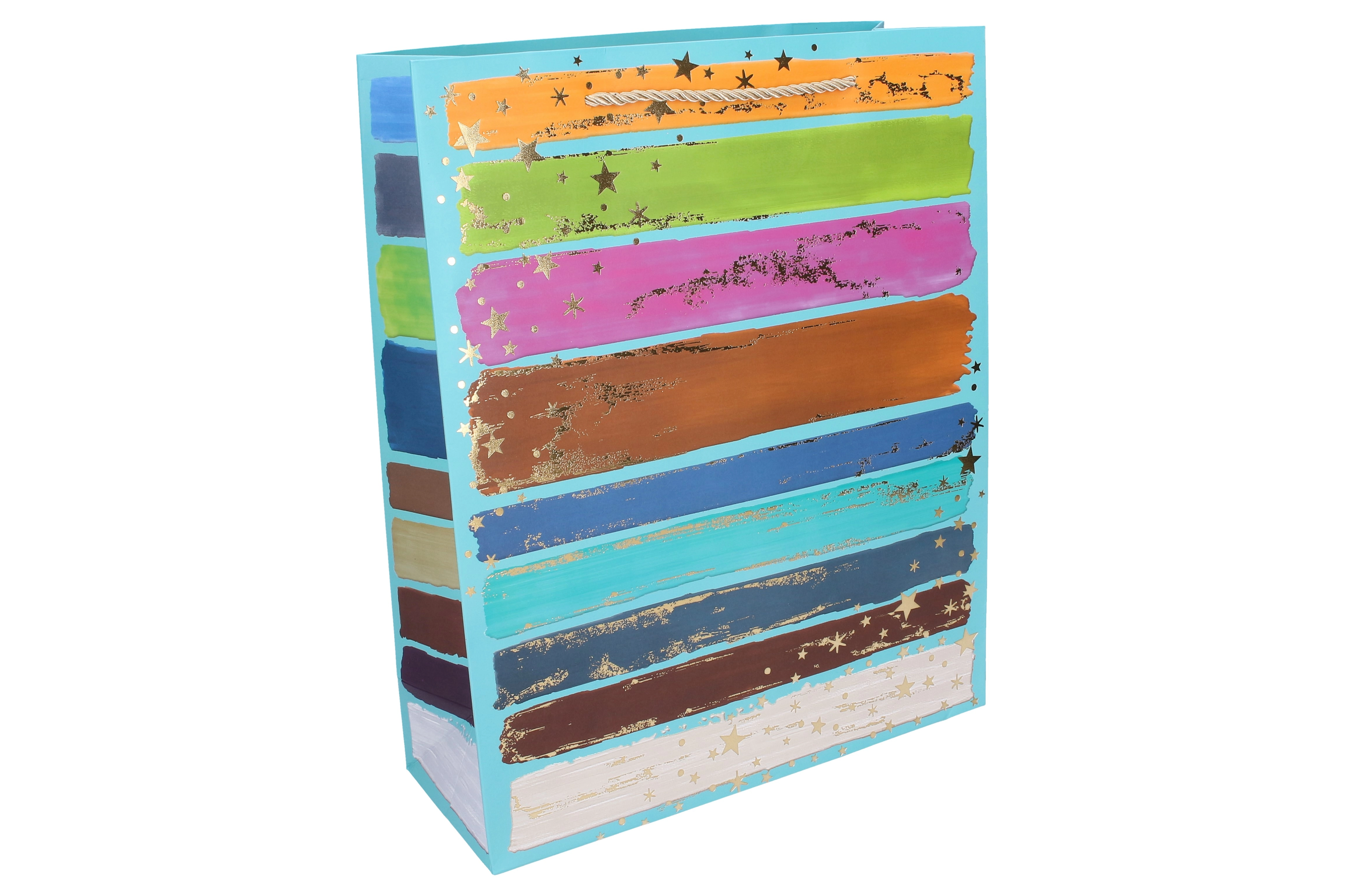 Sac cadeau M 26 × 32 × 10 cm – toutes saisons, rayures colorées et accents dorés
