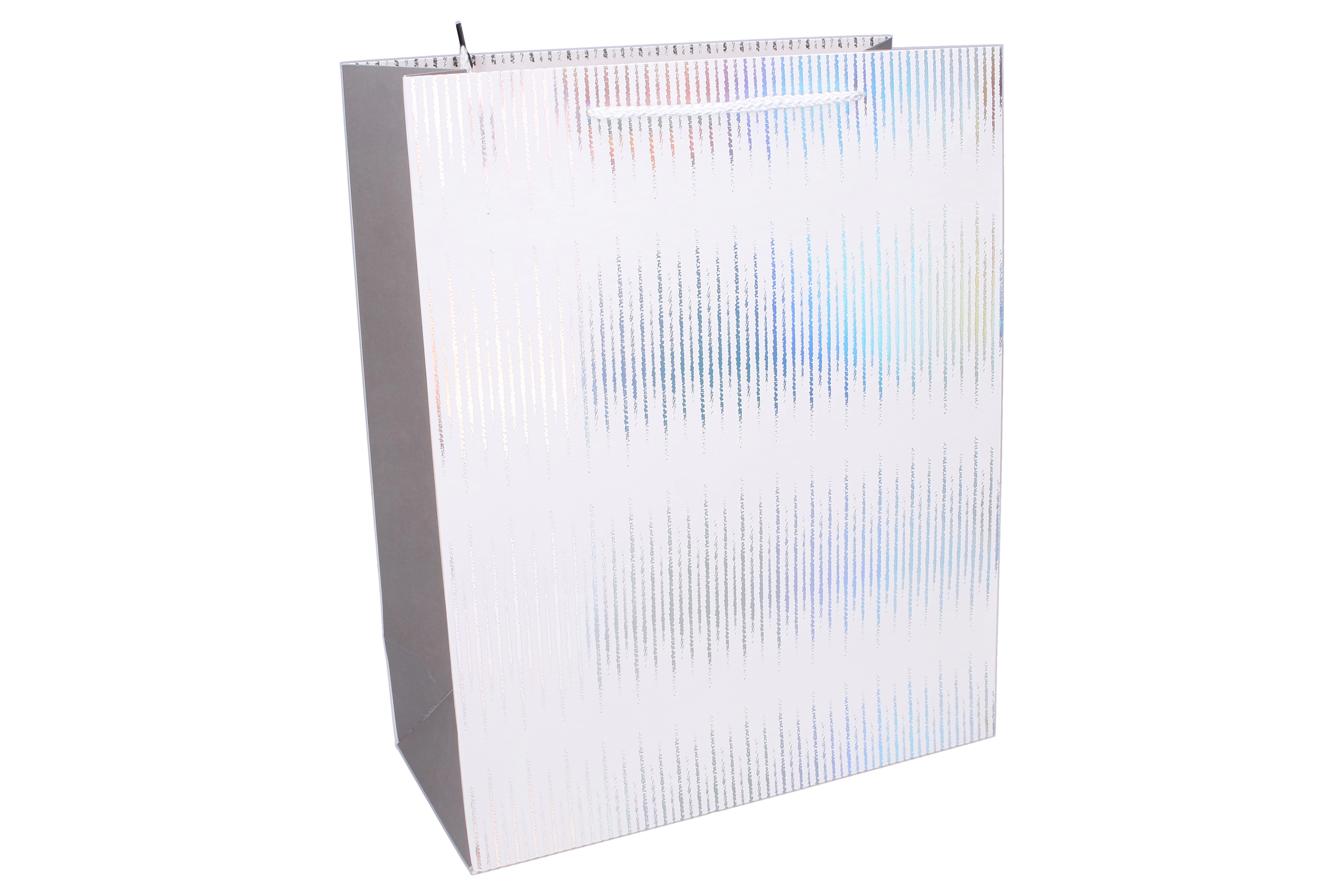 Ce grand sac cadeau à effet holographique apporte un aspect exceptionnel à chaque présent. Grâce à son papier épais et à ses anses en corde de qualité, il est fiable pour le transport et représentatif pour les moments festifs.