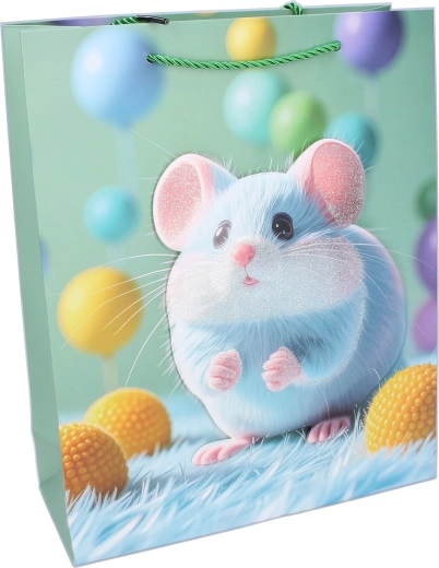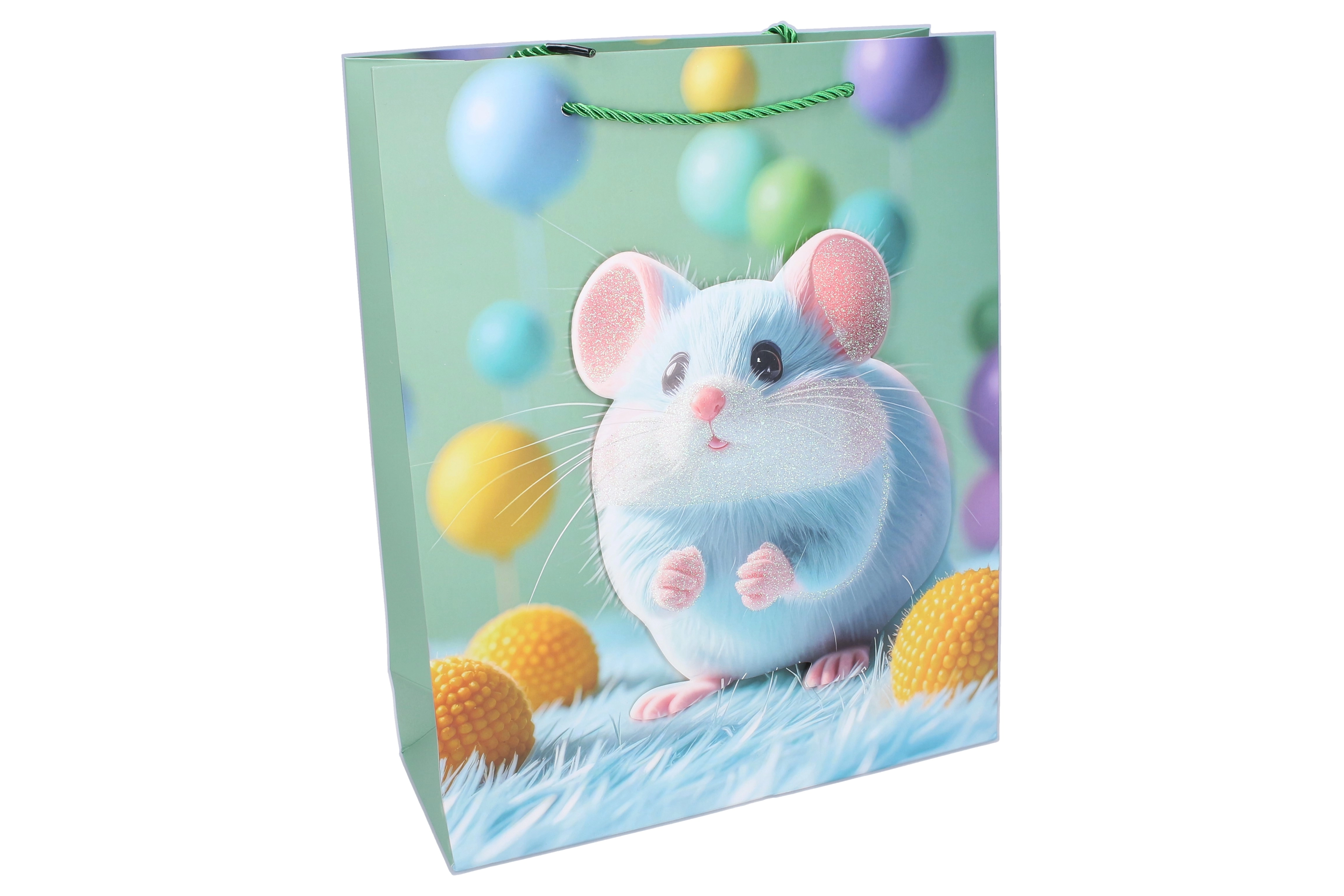 Un sac cadeau pour enfants, taille L, aux dimensions 30 × 40 × 12 cm, idéal pour les anniversaires, les fêtes et autres célébrations. Il offre une structure solide, un espace généreux pour les cadeaux plus volumineux et 4 variantes attrayantes de motifs pour filles et garçons.