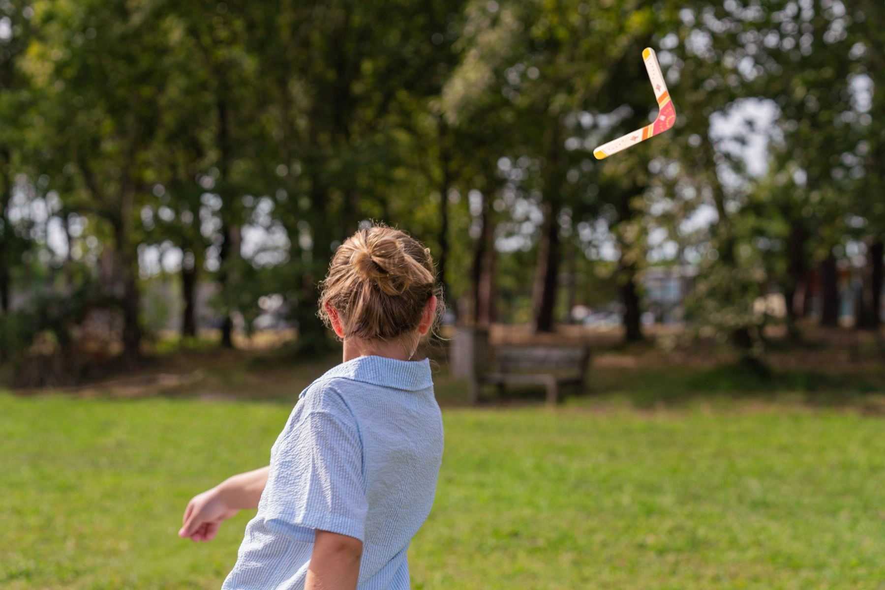 Apprenez l’angle, la direction du vent et la force — le boomerang revient de manière fiable et garantit un divertissement sans fin en plein air.