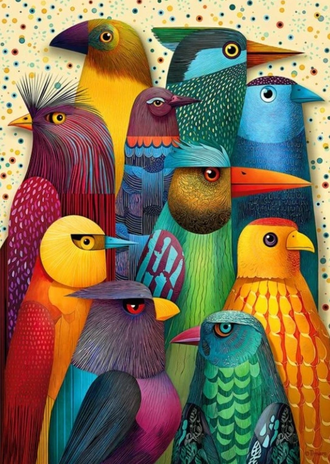Découvrez le plaisir d’assembler un puzzle de qualité CHERRY PAZZI. Le motif Club des oiseaux propose une mosaïque colorée d’oiseaux et de détails qui ravira les amoureux de la nature. Avec ses 1000 pièces, profitez d’un défi agréable et, une fois terminé, obtenez une image décorative de 50 × 70 cm.