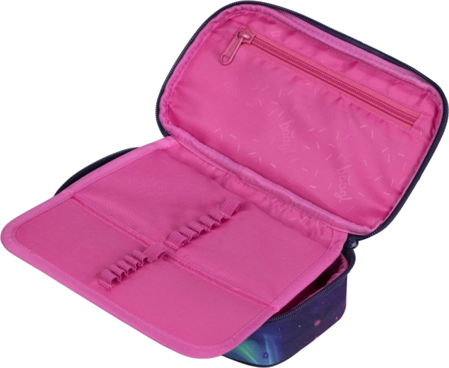 La trousse Baagl Nova GRS au design galactique allie look moderne, praticité et durabilité. Le compartiment principal avec double rabat facilite le rangement clair des crayons, crayons de couleur, feutres et règles, tandis que la poche intérieure et la fenêtre transparente pour l’emploi du temps aident à garder la journée d’école sous contrôle.