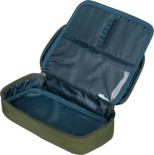 Le set est complété par une trousse spacieuse avec double rabat et poche, un sac de sport pliable HOOP (env. 22 l, 170 g) avec sangle réglable, une banane pour les petits objets et un organiseur/housse polyvalent. Le tout dans un design Olive assorti, en matériaux recyclés et durables.