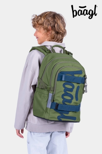 BAAGL set 5 Skate Olive – sac à dos scolaire, trousse, sac de sport, banane et housse pour ordinateur portable avec certification GRS