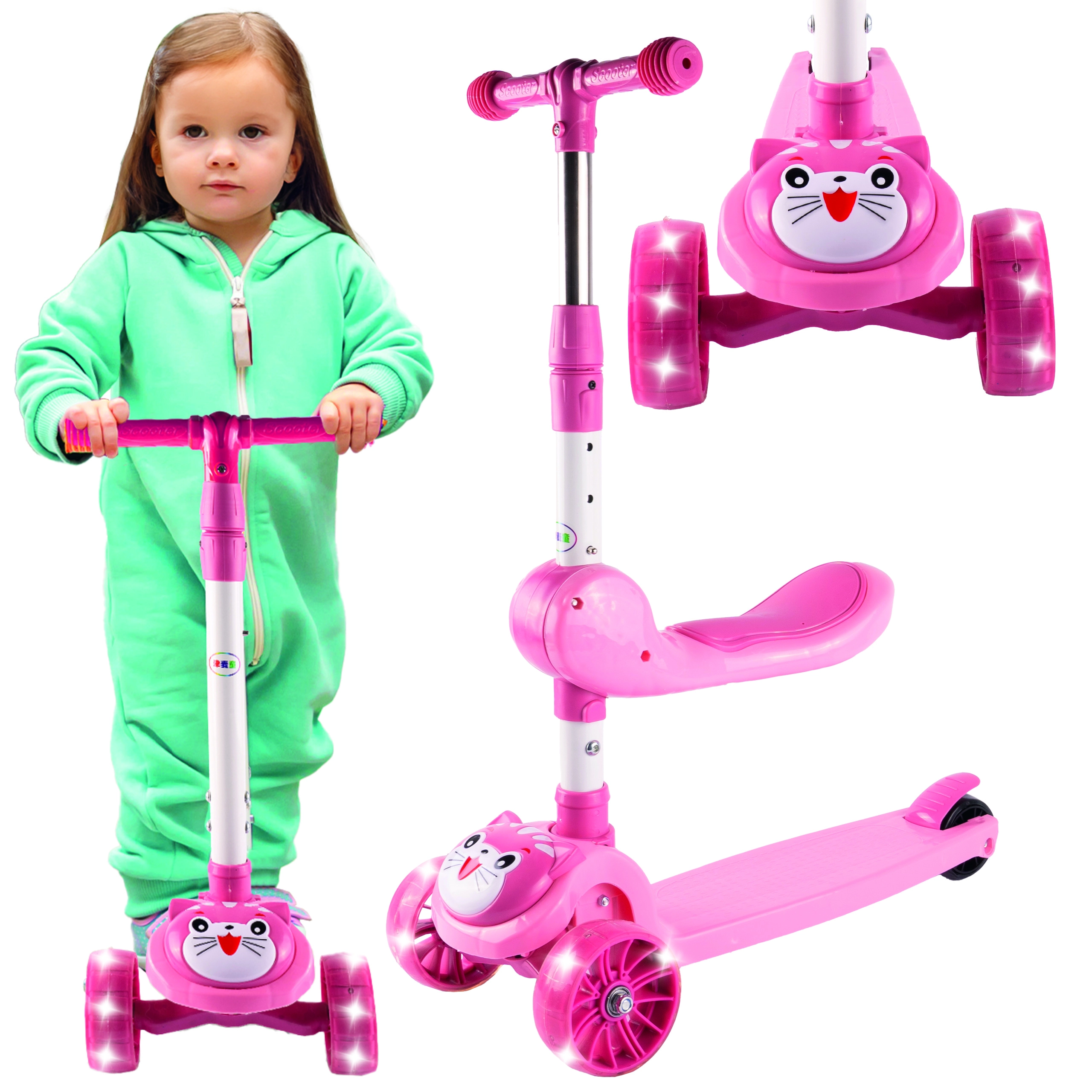 Découvrez une conduite ludique et sûre avec la trottinette trois roues Kotek en couleur orange. Les roues avant avec effets LED lumineux augmentent la visibilité et l’attrait pendant la conduite. La hauteur réglable du guidon (61 / 70 / 74 / 78 cm) grandit avec l’enfant et garantit une bonne posture.